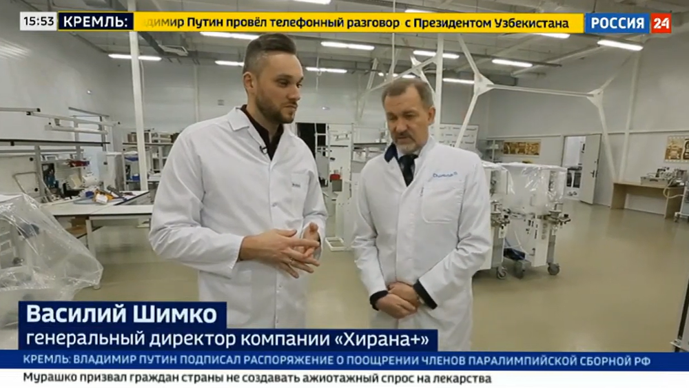 Достижения отечественной фармы и медицинского приборостроения. Василий Шимко рассказывает о работе «Хирана+» в репортаже телеканала «Россия–24» о возможностях предприятий, действующих в ОЭЗ «Технополис Москва», в рамках программы и задач по импортозамещению.